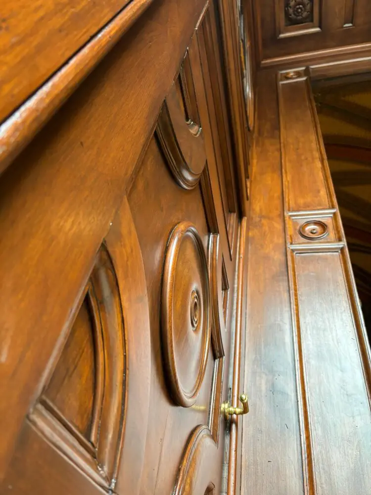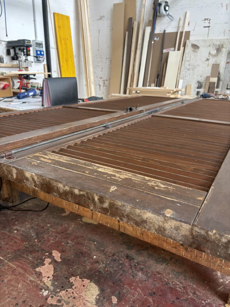 Nella carrellata fotografica che segue potrai osservare il percorso completo: il legno consumato e opaco prima del nostro intervento, le fasi intermedie di sverniciatura e carteggiatura, la precisione delle riparazioni artigianali e infine il risultato finale.