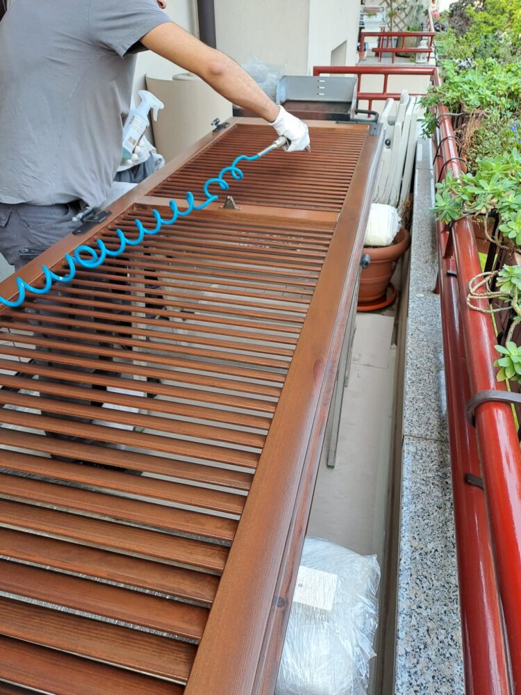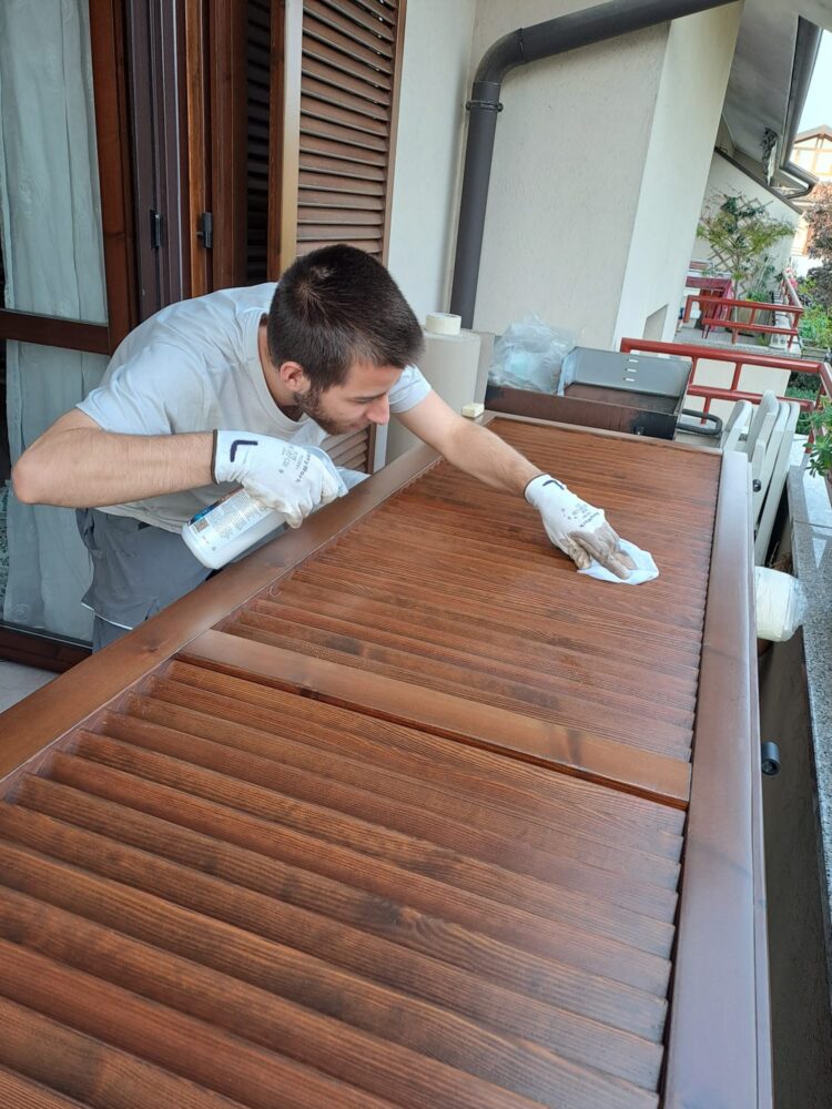 Durante questi interventi ci occupiamo di rigenerare le persiane esistenti attraverso una pulizia accurata delle superfici e l’applicazione di prodotti professionali in grado di ravvivare e proteggere il legno.